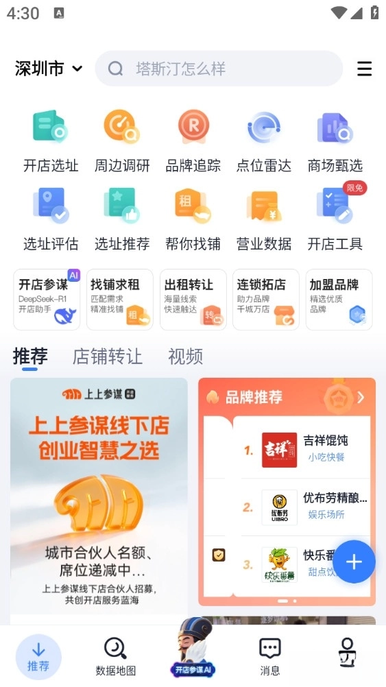 正在创业开店的朋友们注意啦,这款软件千万别错过!它借助智能技术能帮你精准锁定优质店铺地址,让店铺选址不再头疼;还有AI助手随时为你解答开店过程中的各种疑问,赶紧来体验吧!