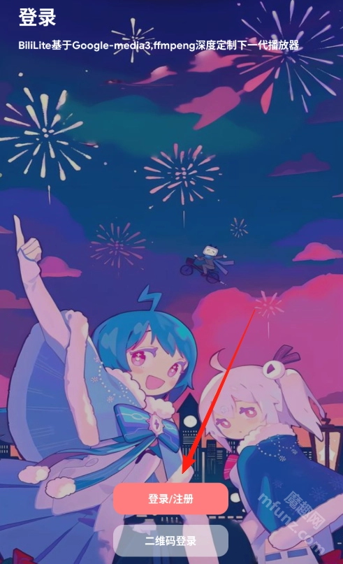 1、打开BiliLite手机版后,点击登录/注册按钮,登录方式可选择通过B站账号或手机号进行。