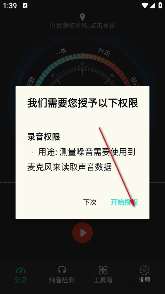 授权完成后开始检测周围环境分贝