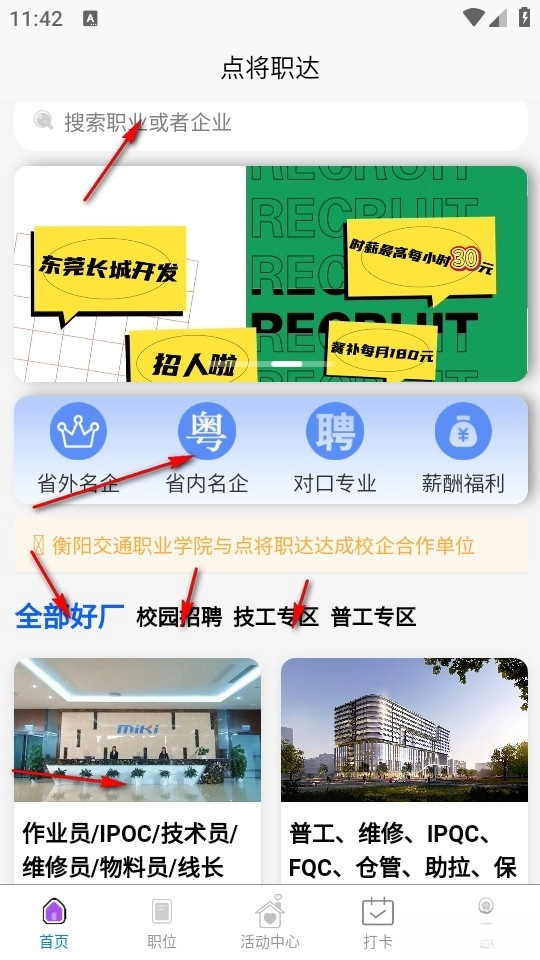 用户能够在该软件里开展求职活动,进入首页后,就能看到省内与省外的招聘企业,大家可以依据自身需求进行分类检索,也可以直接查找目标岗位。