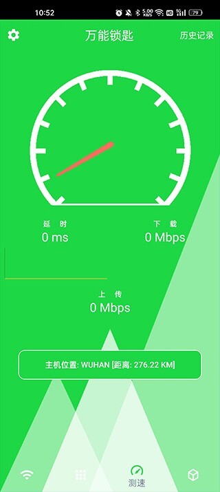 3、点击测试,开始测试,马上就可以查看连接wifi的上传速度和速度;