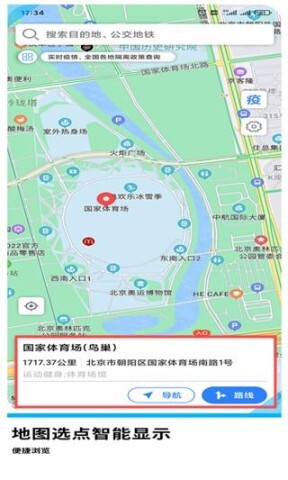 3、在搜索结果中选择您心仪的地点,如【国家体育场(鸟巢)】,点击【导航】,旅程就此启程。