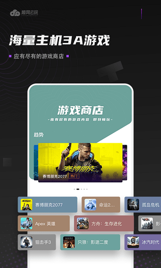 顺网云玩是一款相当不错的手机游戏盒子软件,和其他游戏盒子不一样的是,它能让您在手机上在线游玩那些原本只能在PC端运行的游戏。有了这款软件,您就能在手机上体验到3A大作的魅力,感兴趣的朋友可别错过啦。