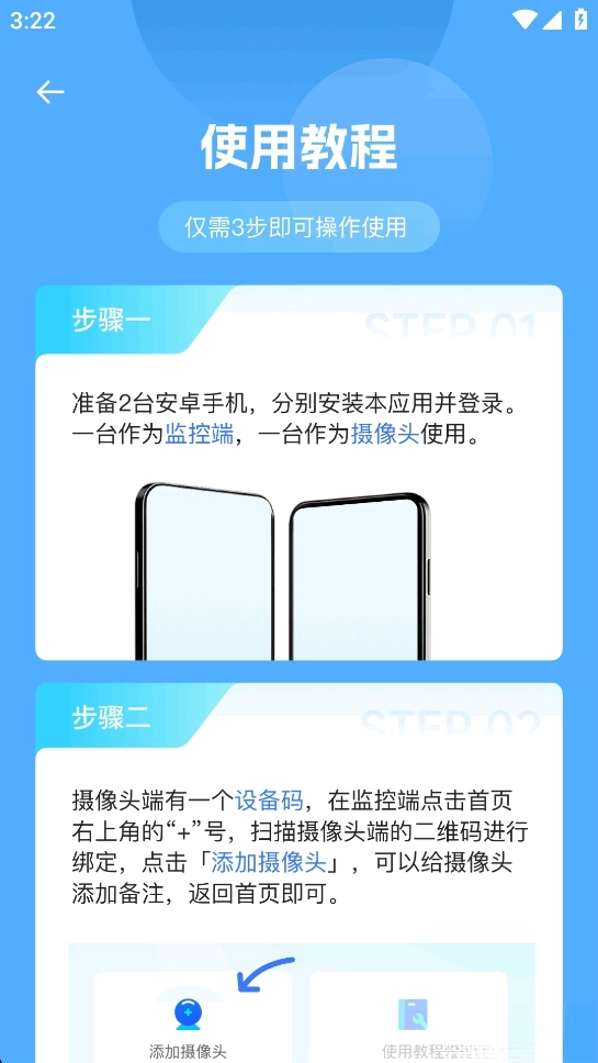 《手机摄像头监控看家》是南京大耳狗科技有限公司开发的一款手机远程监控应用,使用这款软件仅需两部手机就能完成远程监控——一部手机充当摄像头拍摄画面,另一部手机作为查看端查看拍摄内容,操作十分简便,无需专业监控设备也能开展远程监控。