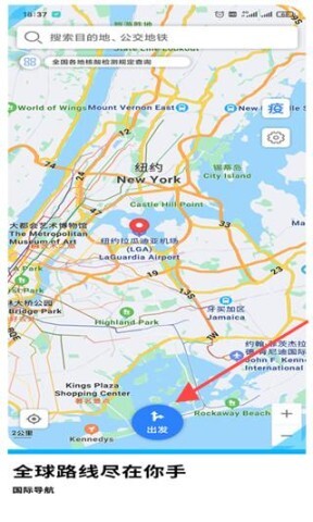 1、在开始页面轻轻一按【出发】按钮,轻松规划您的导航路线,周围的世界立刻展现在您的眼前。