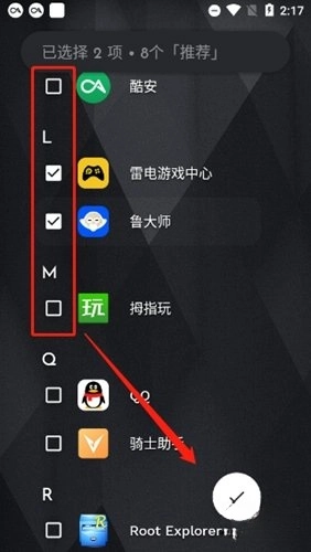上下滑动屏幕的左侧或右侧区域,借助头文字的英文缩写,我们就能检索手机里已安装的软件以及系统程序。
