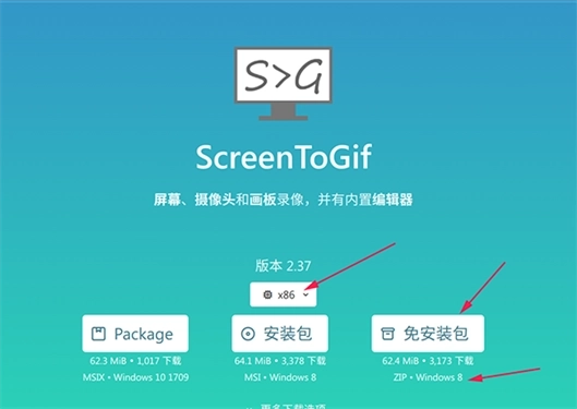 案例软件:32位ScreenToGif(选择x86版本,系统需满足Windows 8及以上要求)