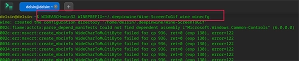 WINEARCH=win32 WINEPREFIX=~/.deepinwine/Wine-ScreenToGif wine winecfg