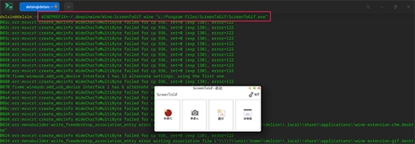 WINEPREFIX=~/.deepinwine/Wine-ScreenToGif wine "c:/Program Files/ScreenToGif/ScreenToGif.exe"