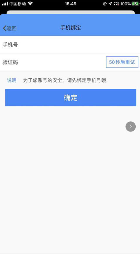 3、当账号未绑定手机号时,点击“登录”按钮后,系统会跳转至【手机绑定】页面。