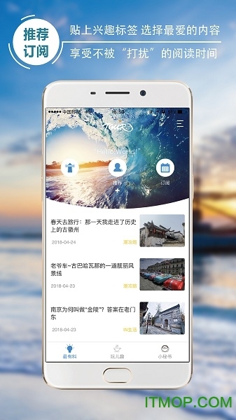 “旅游+”App由中国旅游报社为终端游客打造,是一个以轻松有趣的形式促进旅游文化与旅游消费互动的平台。它致力于传播优质旅游理念,倡导优质旅游生活。该App拥有三大功能,即多元化资讯服务、共享型内容生产模式和智能推荐阅读,并设有最有料、玩儿趣、小秘书三个主要栏目。