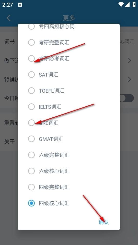挑选希望修改的词书信息,之后我们就能调整所学词汇信息的涵盖范围了。