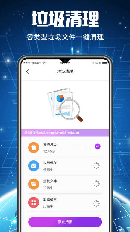 采用专业级垃圾文件扫描引擎,能快速精准定位并清理各类残留垃圾,助您摆脱手机卡顿、运行缓慢的困扰;搭配智能内存清理算法,可高效释放手机内存空间。