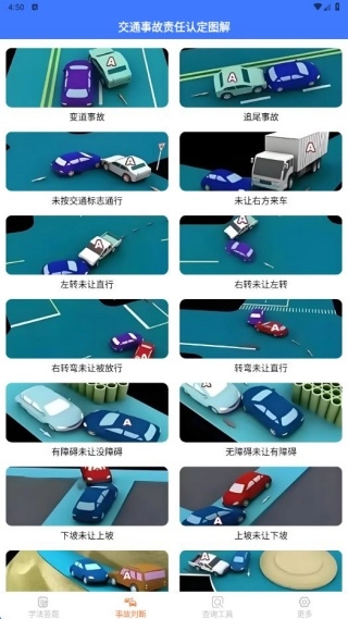 4、在事故判断页面,同样可以及时获取各类交通法规相关信息。