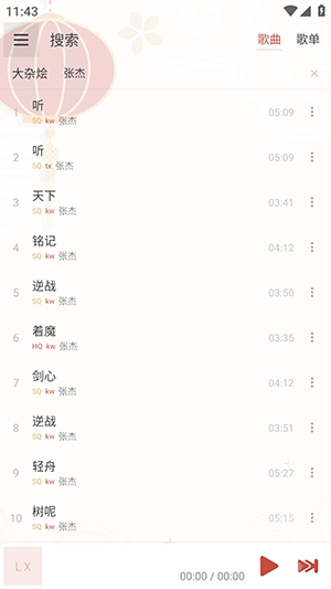 5、可以搜索歌曲或歌手或专辑,快速找到喜欢的音乐。