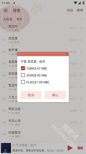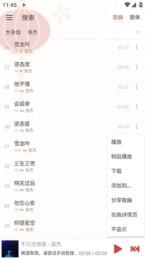 3、点击歌曲后的三个点,再点击,选择音质即可开始。