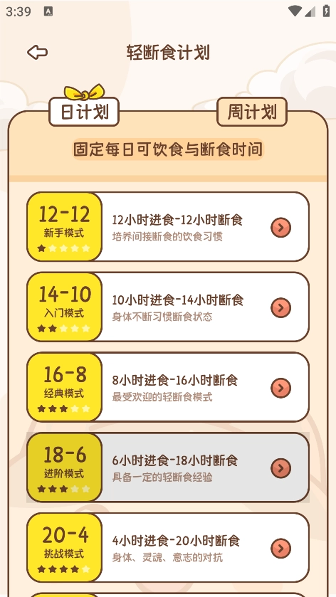 3、然后可以看到各种断食计划