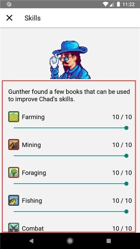 1、你可以任意修改数据,比如你可以切换到【Skills】界面,把Chad各项技能拉到10/10。