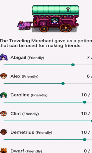 3、NPC关系调整,能修改与所有村民的友谊值,可直接拉满好感,也能调整与可恋爱角色的关系状态