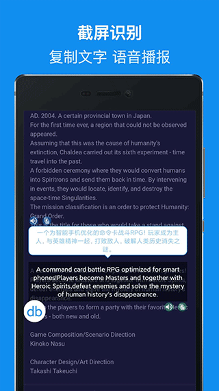 DB翻译器旧版支持查看各类所需文字,翻译速度十分快捷;无论是浏览过程中遇到的文字都能进行选择,还可以手动对翻译结果进行修改,同时具备语音播报功能。