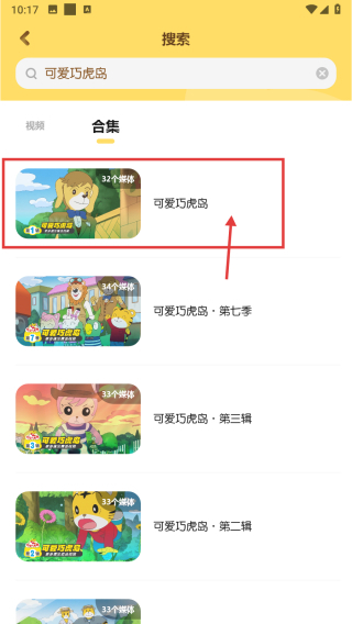 4、进入视频合集列表页面后,找到并点击“可爱巧虎岛”的合集条目,即可查看该系列的视频合集内容。