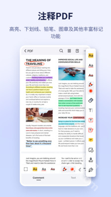 提供高亮、下划、删除、方框、便笺等多种标注工具,满足日常工作和学习的需求。