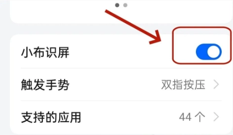 3、再点击小布识屏进去之后把小布识屏开关打开。
