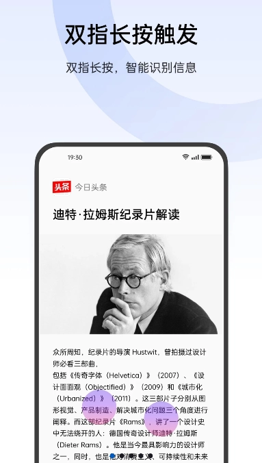 4、挑选一个自己钟爱的触发手势,这里推荐使用双指按压的方式。之后,无论在哪个软件里遇到想要记录的内容或是物品,只需用双指按压,就能直接提取文字并识别物品了。