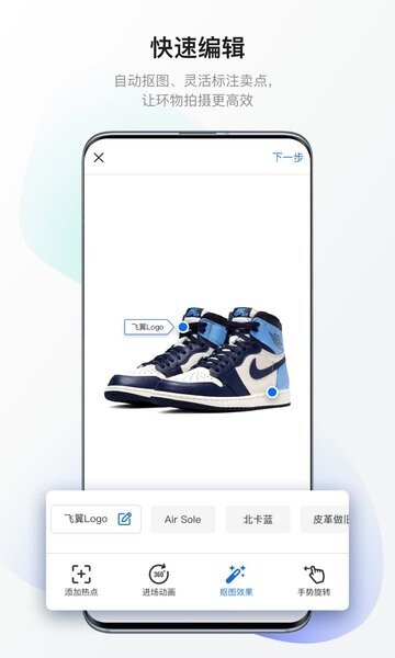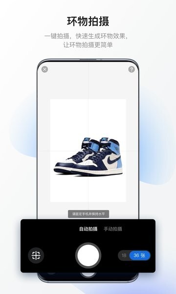 3D环物系列主要服务于电商、广告、汽车、文玩等众多行业,百度美拍3D借助智能联动的3D环物采集硬件,搭配一键拍摄、云端上传及快速编辑3D环物作品的功能,能够生成全方位、可交互且生动立体的商品3D展示效果,有效提升商品的营销转化效率。