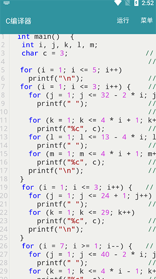 C编译器手机版是一款专为用户打造的手机编程应用,能协助用户解决代码编写过程中遇到的问题,还可以运行代码程序以检查是否存在错误。使用该软件时,只需输入代码并点击运行,稍作等待即可看到运行结果。软件整体设计风格简洁,功能完备,不仅提供基础的代码颜色区分功能,还针对代码美观性设置了缩进功能,感兴趣的话不妨体验一下。