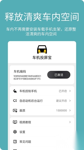 车机投屏宝车机版是一款投屏便捷的软件,用户使用设备时可将自身设备屏幕投射至车辆屏幕,操作轻松,且投屏过程中音画全程同步、无延迟,使用体验更流畅;此外,软件还具备多项实用功能,无需充值会员即可畅享。