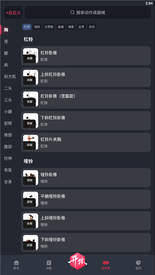 3、超300个健身动作库:涵盖器械与徒手训练,支持自定义功能。