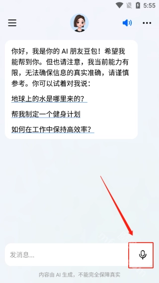 1、登录账号后,可在下方语音输入与豆包聊天;