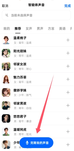 2、选择“克隆我的声音”功能,点击“确认录制”按钮,并依照提示朗读给定文本,即可完成声音克隆操作。