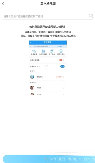 4.输入幼儿园的的班级ID或者园所加入幼儿园。
