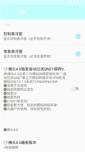 佛头弱网是一款自带防封号系统的弱网测试神器。通过佛头弱网4.0版本这款软件可以按照自己的需求搭建特定的网络环境,适用于游戏网络优化、软件测试等多种不同场景和需求。佛头弱网参数配置软件还支持自定义调整延迟、丢包率、带宽等网络参数,多套预设参数模板,无需root权限且不需要注册或登录,打开就能直接用!