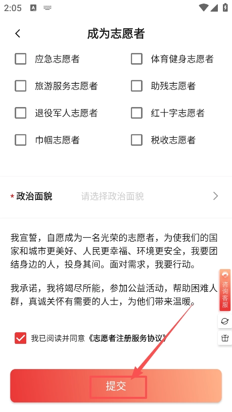 4、完成后同意协议点击提交即可完成