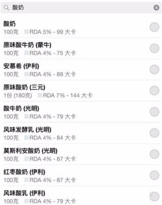 4、更有意思的是,它还能对比不同品牌同类产品的卡路里含量,帮你快速找到更优的选择。就拿酸奶来说,市面上常见的蒙牛、伊利、三元等品牌的酸奶,卡路里数值相差不大,而纯酸奶则是相对更健康的选项。