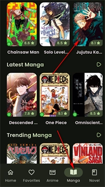 1、打开软件,点击下方Manga,再选择要看的漫画