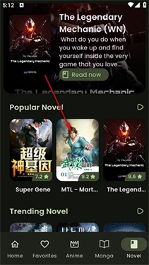1、打开软件,点击右下角Novel小说,选择要看的小说