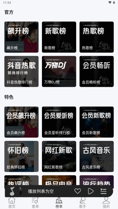 3. 支持按多种方式浏览资源,还能创建和管理个人歌单。