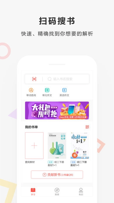 2、检索便捷:支持条形码扫描,也可通过书名、年级、学科、版本等多种维度进行查找,搜索方式灵活多样。