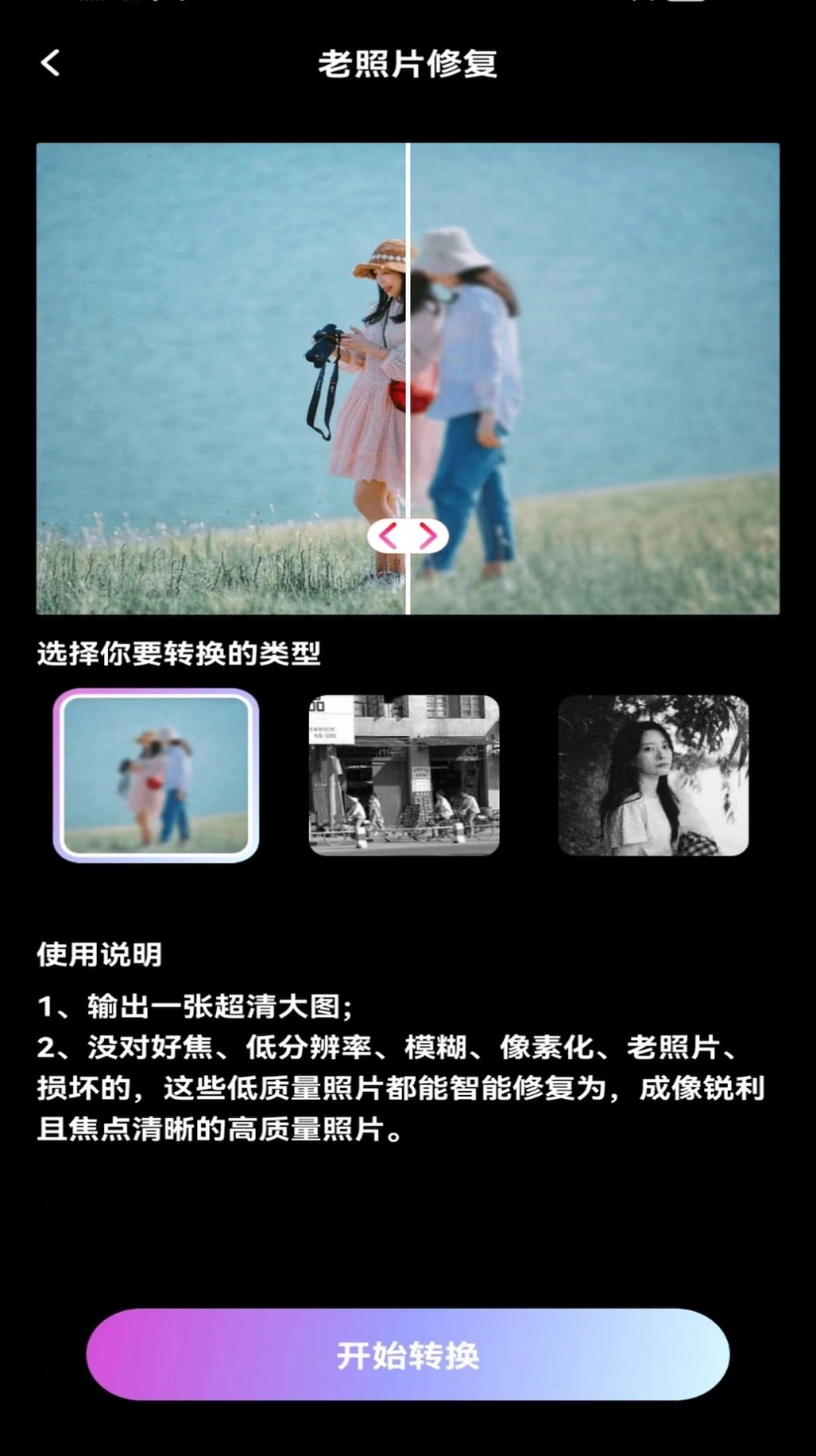欢颜相机 1.0.0是一款拥有超多功能的AI拍照软件,不仅可以使用各种类型的美颜滤镜和好看的特效贴纸,而且为用户提供各种美颜、滤镜、拼图等功能,能够充分满足用户不同的美颜需求,上传图片后即可转换为不同风格,来拍摄一张满意的照片。