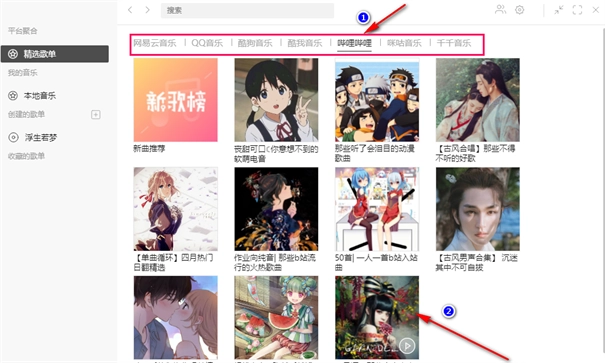 4、可以在几家网站之间进行切换和歌曲的添加,可以将多首音乐添加为播放列表进行播放;