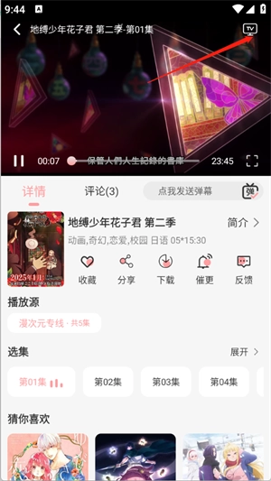 5.点击你想要观看的番剧进入详情页面即可进行观看,并且点击观看界面右上角的TV图标还可以进行投屏观看
