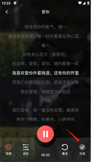 3.翻唱完之后点击完成即可录制完成