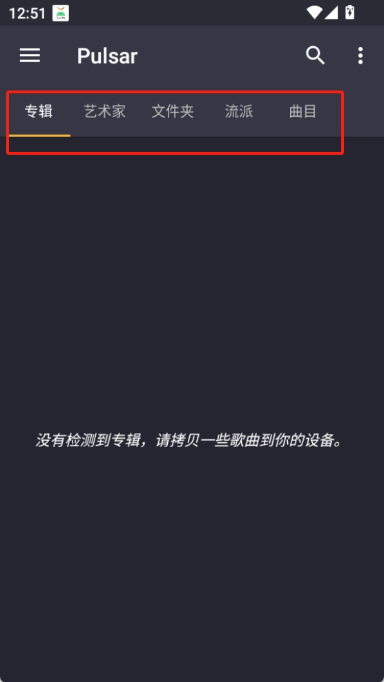 1.Pulsar安装并打开后,Pulsar支持按专辑、艺术家、流派和文件夹分类管理音乐