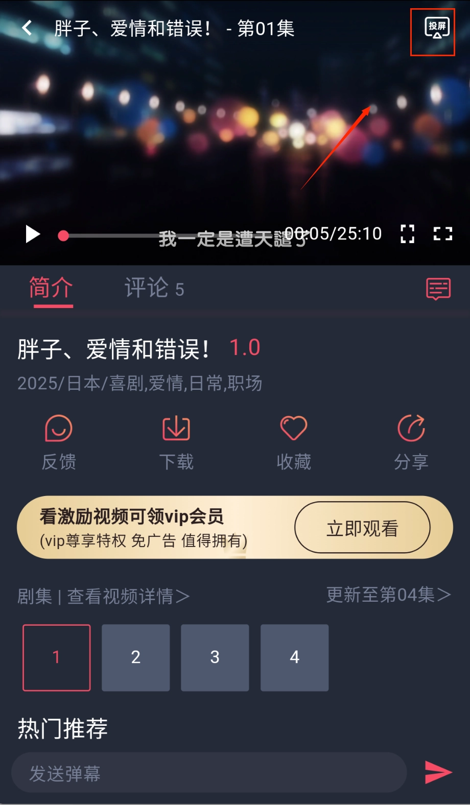投屏功能能够把内容投射到电视的大屏幕上,很适合和朋友一同观看,只要保证设备连接着同一个网络就能使用,让你享受到更大屏幕带来的观影体验。