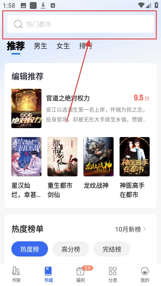 在书城页面点击搜索框,输入你想看的小说名称或者类型,就可以找到心仪的小说了。