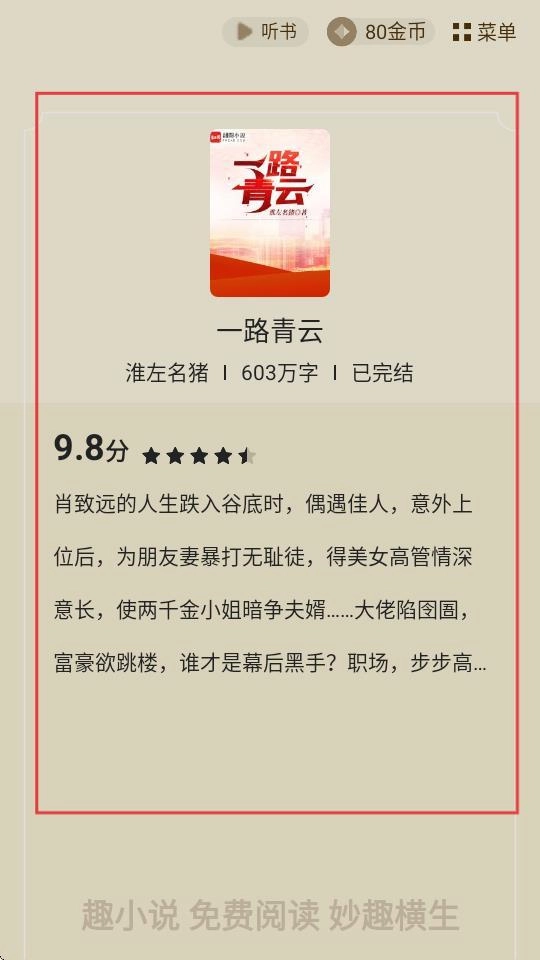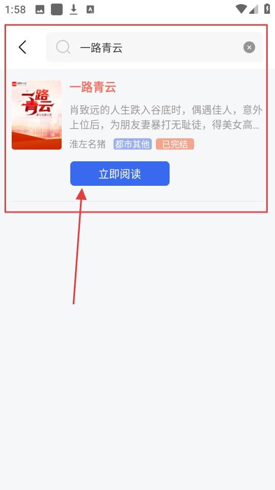 找到《一路青云》后,点击【立即阅读】按钮,就可以开启这本小说的阅读之旅了。